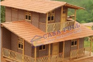 Para el entrepiso de las casas de dos niveles, utilizan una estructura de madera de fibra dura y cruda (sin inmunizar), con dimensiones y tipo de madera ajustados al diseño.